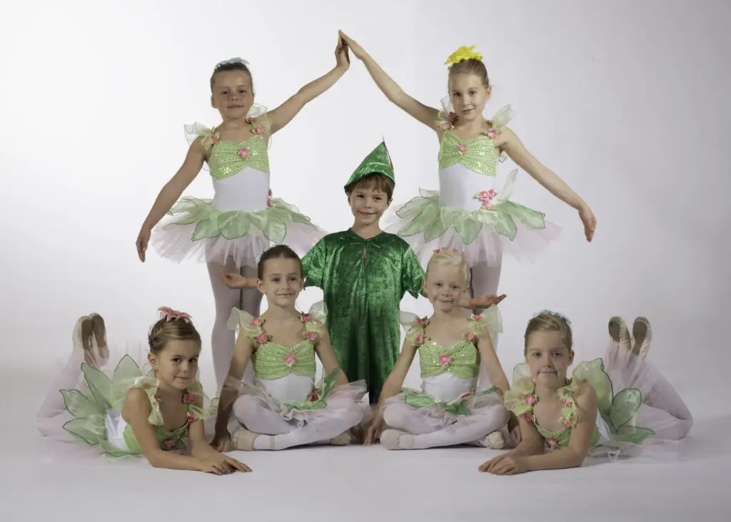 Unsere fast jüngsten Schüler präsentieren hier ihre ersten erlernten Schritte und Formationen in einem kleinen Tanz, wobei sie wie kleine Feen mit Peter Pan über das Parkett schweben.